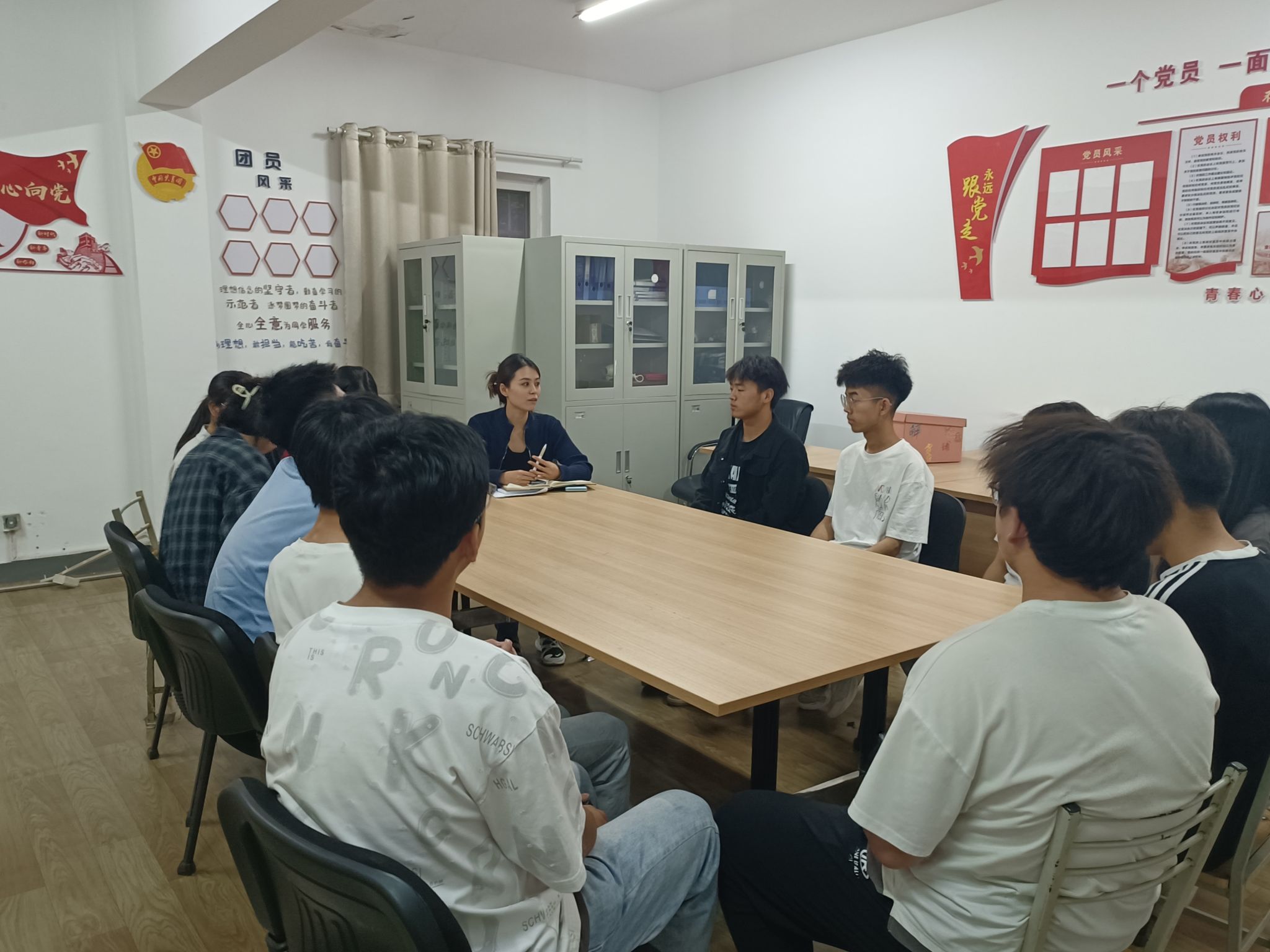 化学工程与工艺专业学生党支部于六号楼工作站开展“传帮带 促成长”主题党日活动。党支部书记盖潇宇主持,2020级学生党员代表和2023级全体入党积极分子参与。