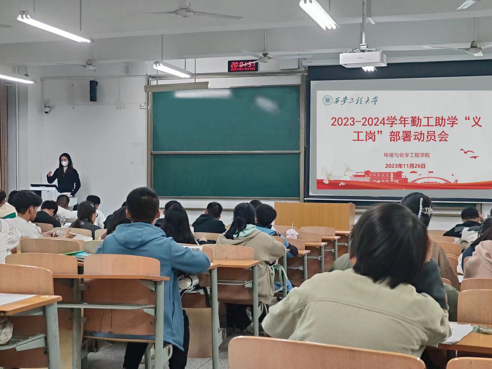 在教学楼D2110召开了2023-2024学年勤工助学“义工岗”部署动员会。学院学生资助工作专项负责老师盖潇宇、张易泽,以及各年级、各班级义工岗负责人、学院资助助理参加了此次会议。