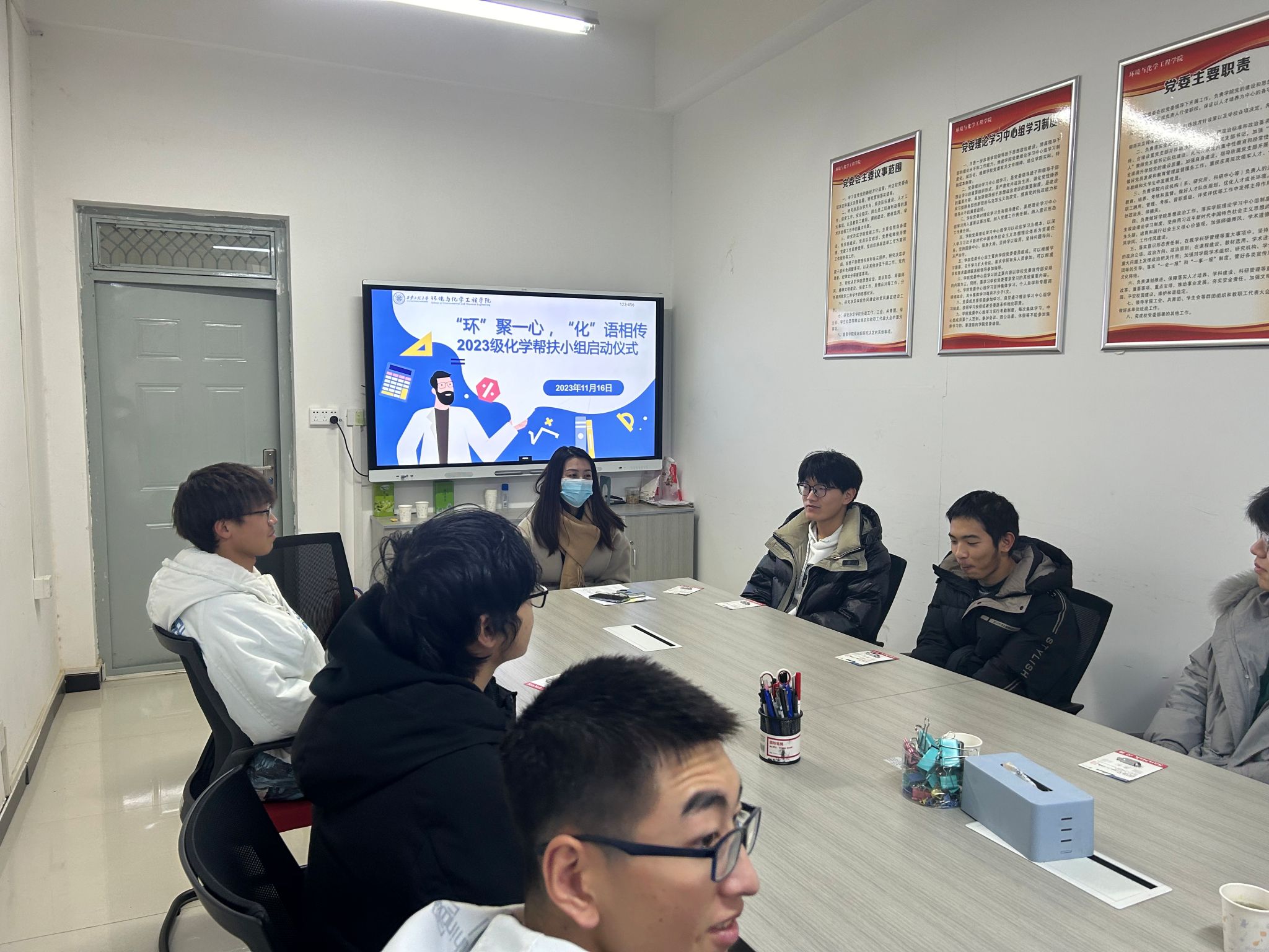 开展“‘环’聚一心,‘化’语相传”义工岗课程助学团活动,学院学生资助工作专项负责老师盖潇宇和部分获得国家励志奖学金并且成绩优异的大二、大三学生参与了本次启动仪式。