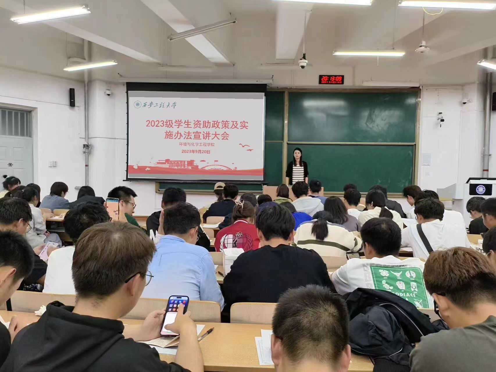 于9月20日在教学楼B137教室召开学生资助政策及实施办法宣讲大会。辅导员盖潇宇及学院全体大一学生参会。