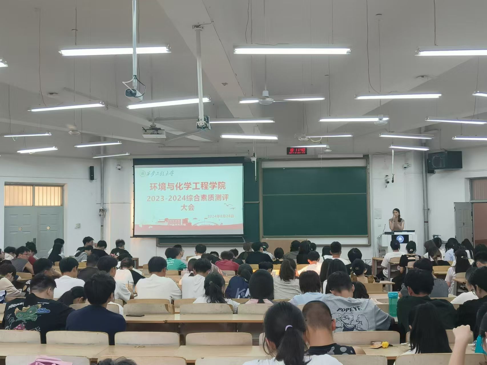 在B栋教学楼133开展2023-2024学年本科生综合素质测评小组培训会,各班级测评小组成员参会,学院资助辅导员盖潇宇主讲。