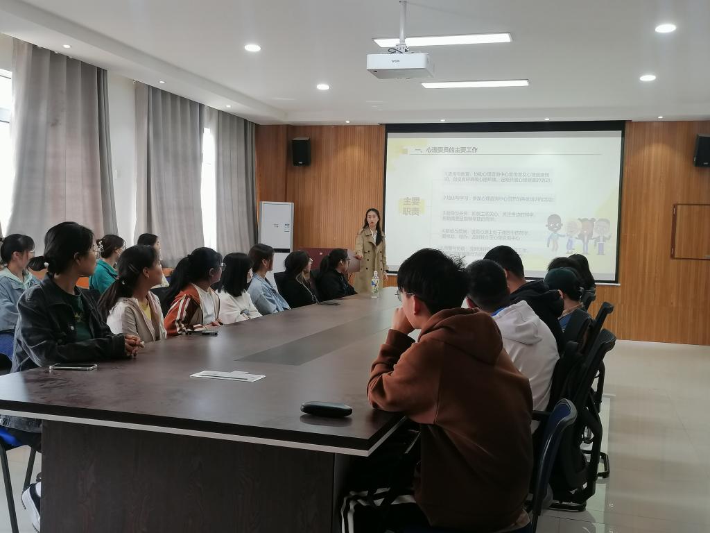 于4月12日中午在学院507会议室召开班级心理委员培训大会。心理辅导员任子瑜和全体心理委员参加本次大会。