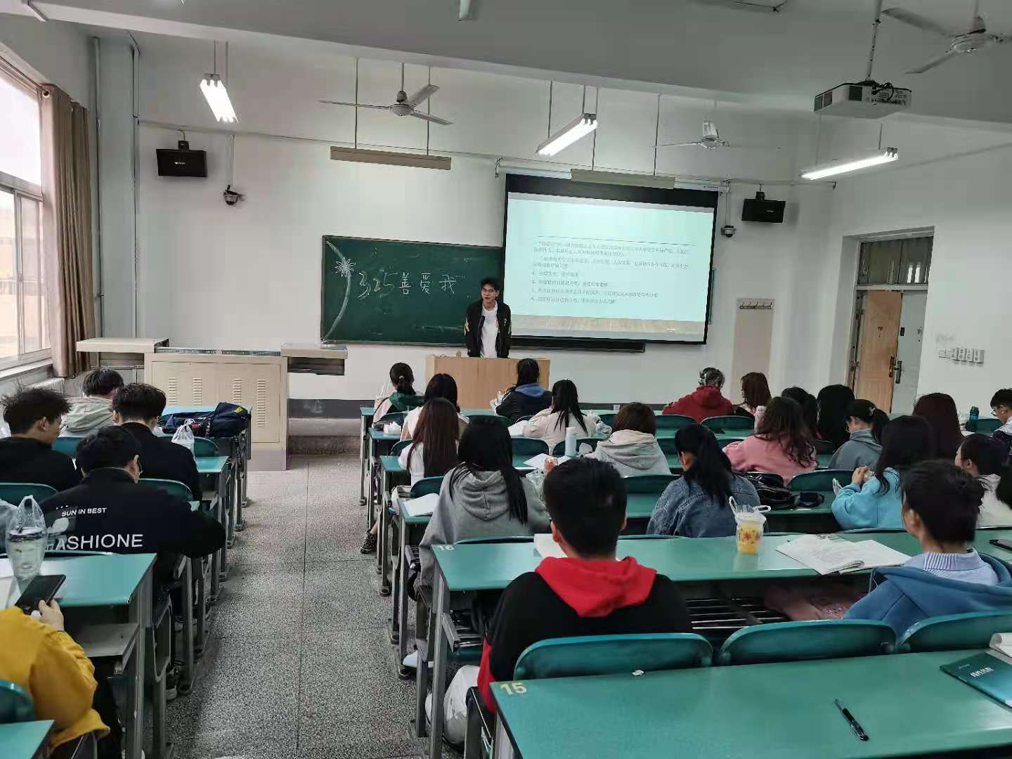 班会初始,张易泽结合班级实际情况对本次班会的目的和意义做出说明。通过讲解PPT让学生了解更多的心理健康知识,引导学生将心理健康知识掌握的更加全面,倡导同学们关爱自己,关心他人,遇到问题可到学校大学生心理健康教育中心寻求专业帮助。大学生只有学会了爱自己,才能懂得如何去爱别人、爱社会、爱国家,青年大学生是国家未来发展的关键力量,而心理健康发展首当其冲,维护好大学生的心理健康,才能成就国家的未来。