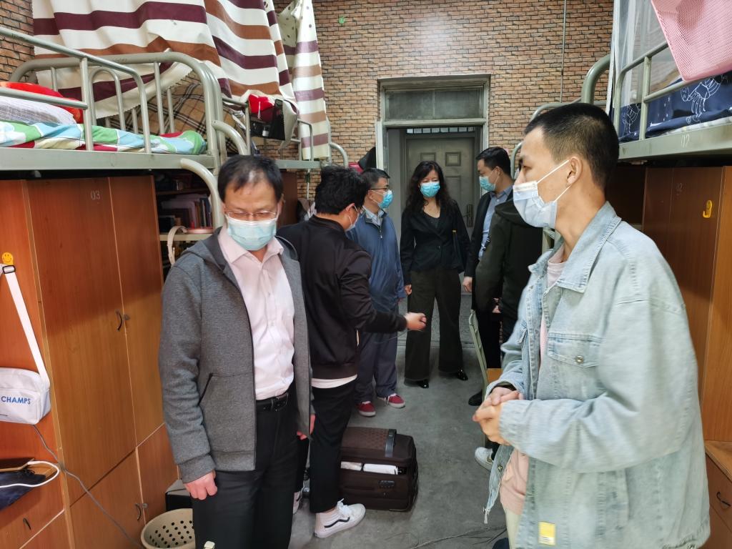为及时了解返校学生的思想动态和学习生活状况,增强战胜疫情信心,5月9日下午,学院党委书记李建学、执行院长张洛红、副院长常薇、党委副书记赖斌以及团总支书记贾天昱一行到临潼校区6号、8号学生公寓楼走访看望返校复学的毕业生,检查宿舍的卫生和安全状况。