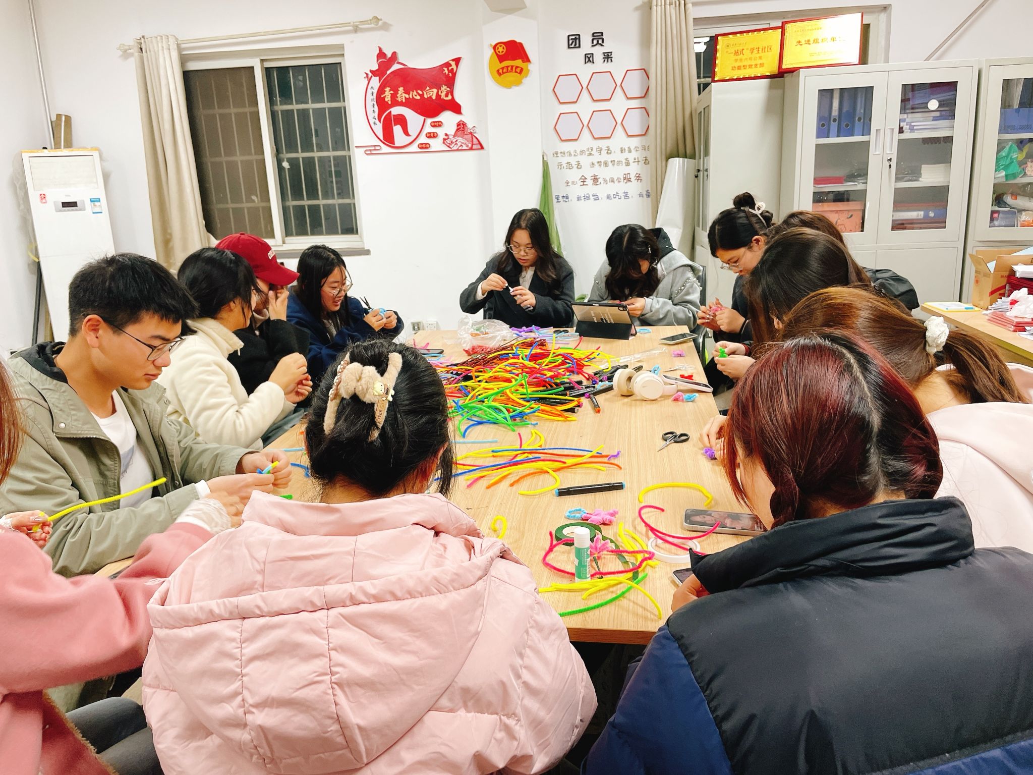 活动以“扭扭棒”手工制作为主线,分为创意实践与情感分享两大环节。在手工制作环节,同学们充分发挥想象力,将色彩缤纷的扭扭棒塑造成花朵、动物造型及实用发饰等个性化作品。随后的解忧分享环节中,学生们围绕作品展开情感叙事,讲述创作灵感与内心感受。李同学展示蓝色扭扭棒编织的“花朵”发饰时表示:“制作过程让我专注于当下,作品象征内心对平静的渴望。”通过艺术疗愈与群体互动,同学们反馈“感受到创作成就感”,活动有效缓解了学业压力,增强了心理韧性。