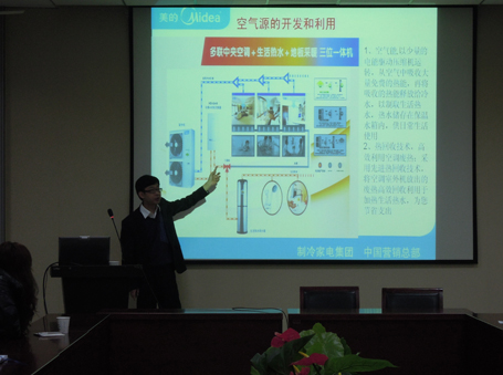3月21日上午,美的集团陕西分公司技术部部长梁斌我校在第三会议室为海角网 部分教师、研究生、本科生做了题为“中央空调技术市场动态分析及发展趋势”的报告。学院院长助理周飞主持了报告会。