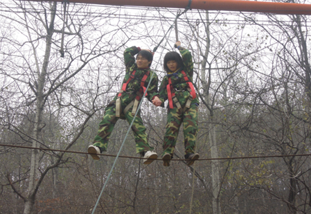 训练活动通过“背摔”、“高空断桥、高空走钢丝、高空独木桥”、“穿越电网”、“翻阅高墙”等项目进行了拓展训练。在各项拓展活动中同学们情绪高昂,迎接挑战,踊跃参与。活动中,同学们积极配合,积极合作,尤其是“翻阅高墙”活动,让大家充分感受到了团队协作及相互信任、奉献、团队合作的重要性。