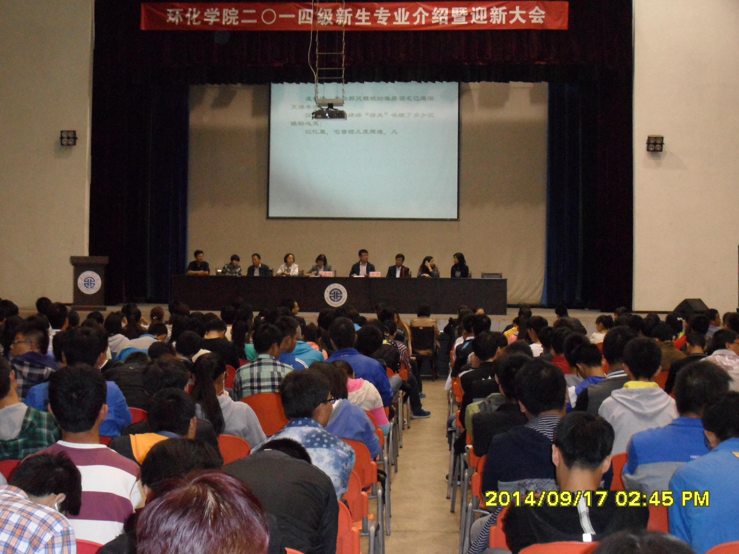 9月17日下午2时,环化学院在临潼校区大学生活动中心召开2014级新生专业介绍暨班主任见面会,学院院长狄育慧、党总支书记李建学、各专业教研室主任、2014级班主任、14级全体新生参加了会议。
