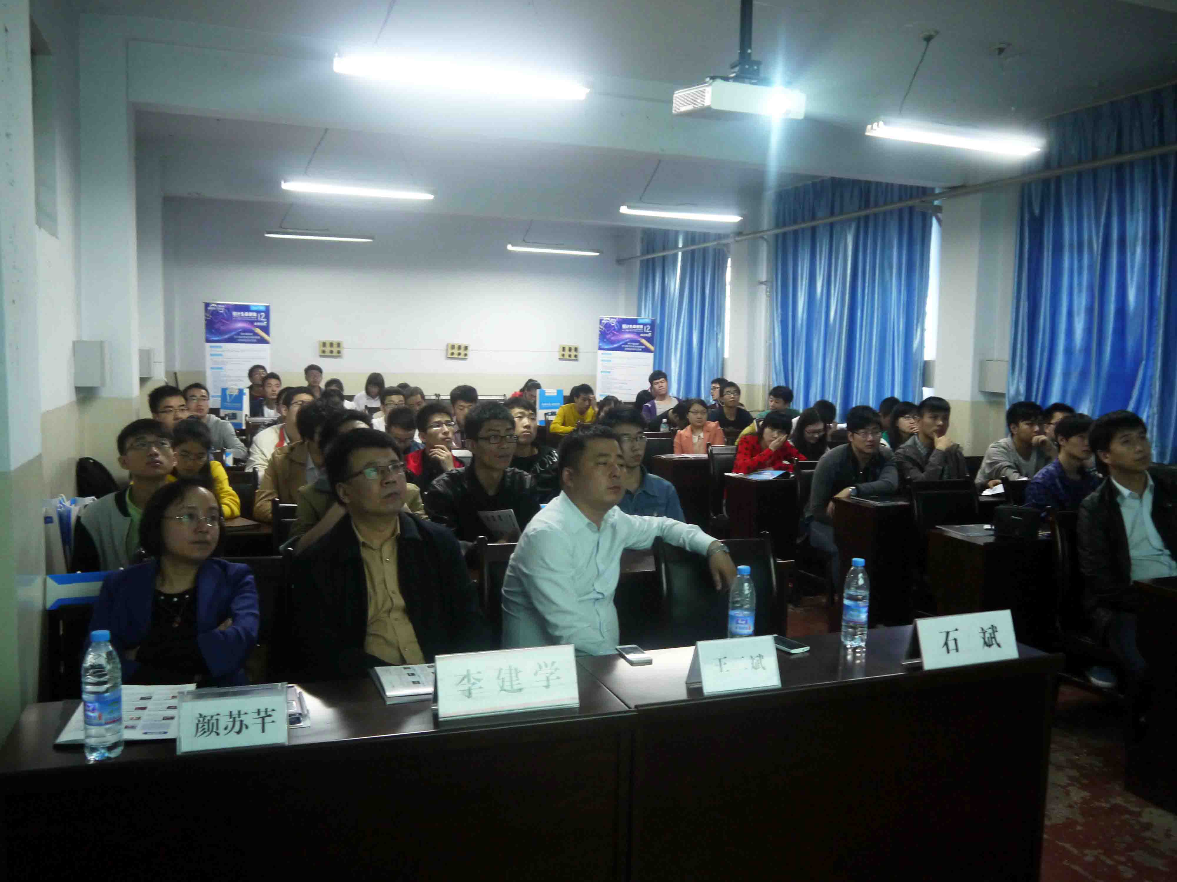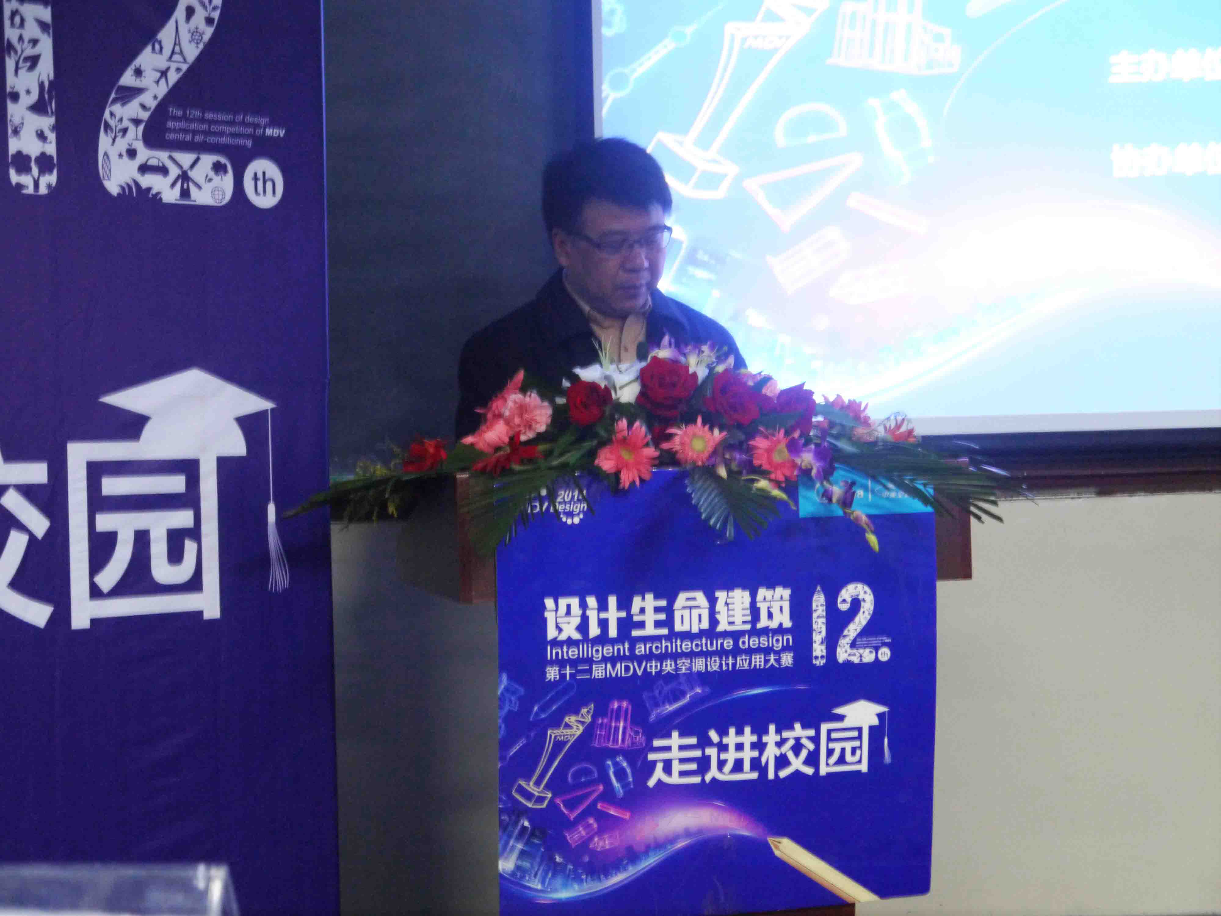 在欣赏了一段精彩的大赛宣传视频后,李建学书记发表了热情洋溢的贺词,随后,来自美的中央空调西安分公司的代表、本次大赛的梦想讲师石斌经理对此次中央空调设计应用大赛进行了详细的介绍,在第十一届MDV中央空调设计应用大赛中获奖学生徐子龙也与大家分享了他们在设计过程中的经验和感受。