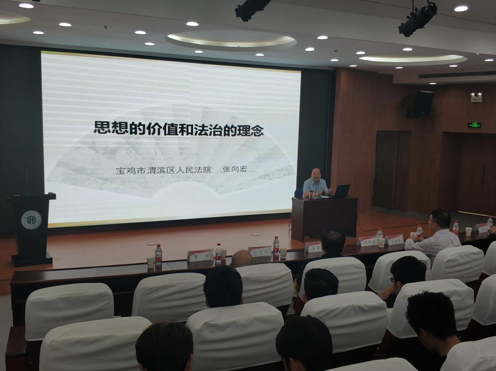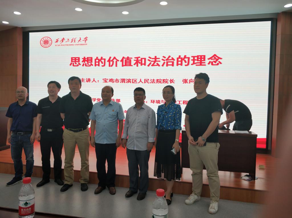 和材料工程学院承办的法制教育报告会于2018年7月5日下午四点在临潼校区图书馆一楼报告厅举行。宝鸡市渭滨区人民法院院长张向宏以“思想价值与法治理念”为题向学生做了报告。宝鸡市渭滨区人民法院政治部主任朱建文、材料学院党总支书记张茂林、党委宣传部副部长戴新、材料学院党总支副书记刘畅、环化学院辅导员贾天昱及两个学院的部分学生参加了报告会,报告会由环化学院党委书记李建学主持。