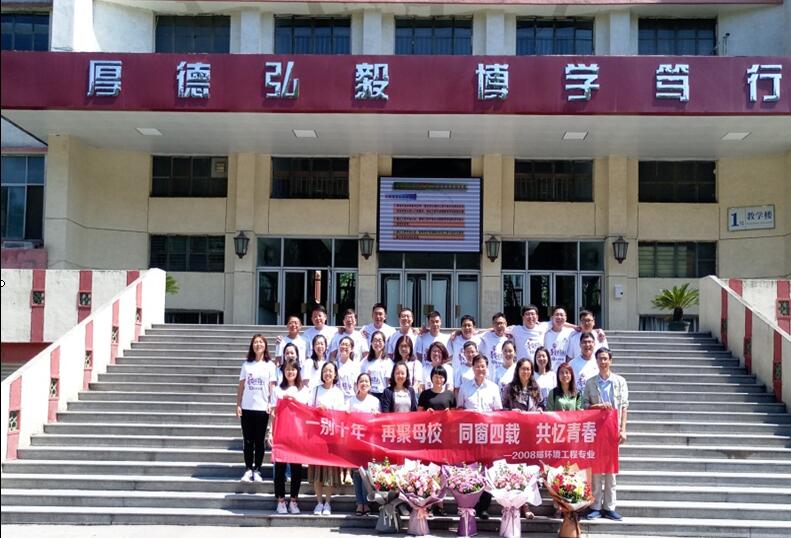 喜迎办学106年、独立建校40周年华诞之际,环化学院环境工程专业2008届30余名本科毕业生重返母校,举办了一场以"一别十年,再聚母校,同窗四载,共忆青春"为主题的聚会活动,续写同学情谊,助推学校发展!