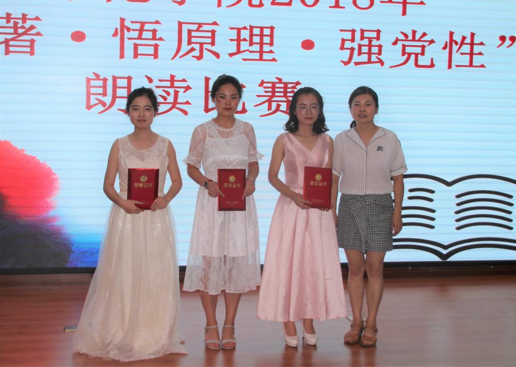 在主持人介绍完评分标准后,首先进行的是教师组比赛,这些平时站在三尺讲台上的老师在诵读时,时而平缓,时而高亢,把习近平总书记的故事讲得情深并茂,表达了自己对党的坚定信念。贺佳获得一等奖;杨敏鸽、杜燕萍、赵婧、李路瑶、贾天昱获得二等奖;郑长征、王力、刘啸尘、侯康、李慧娟、崔红涛获得三等奖。