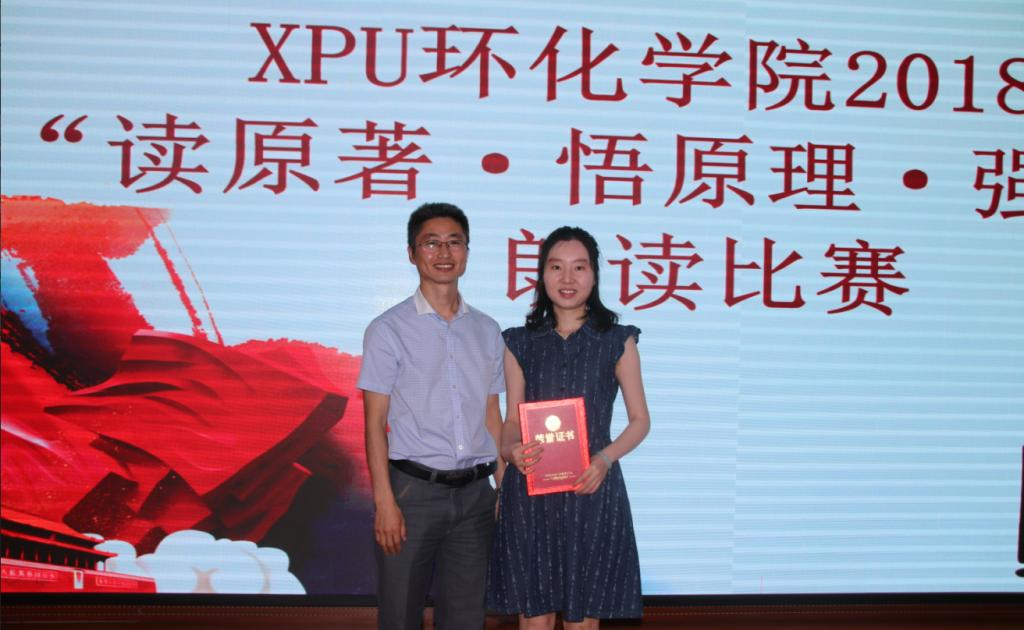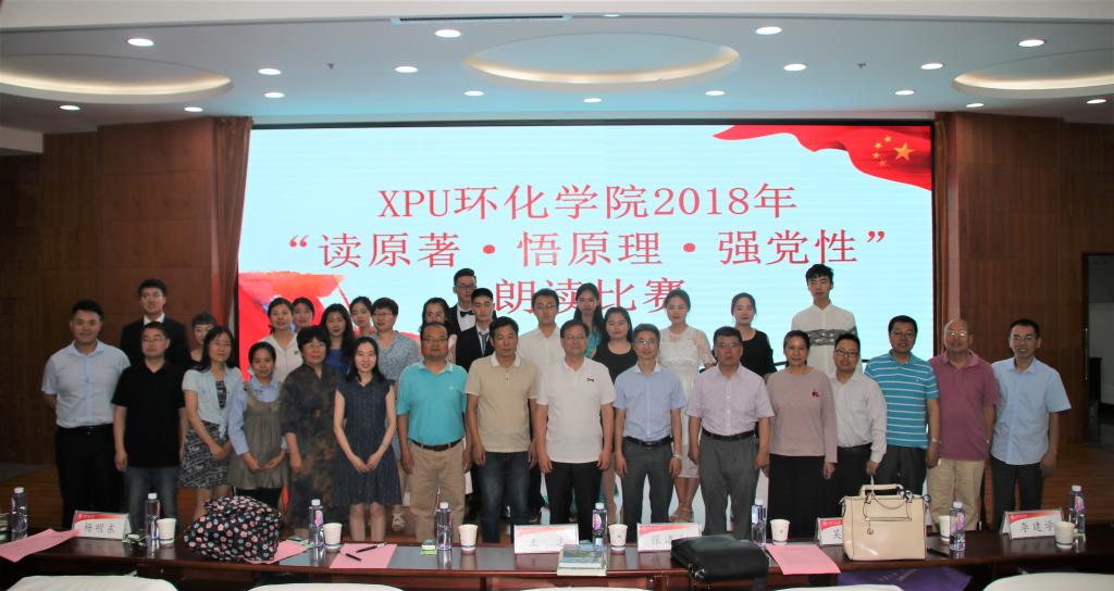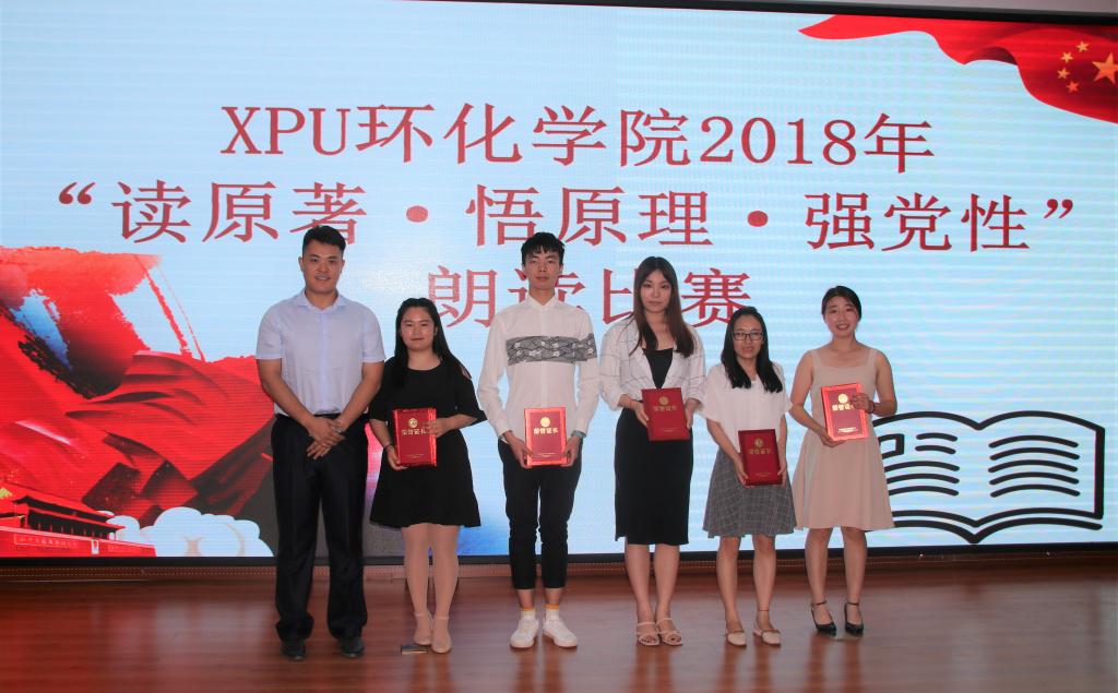 为进一步推动习近平新时代中国特色社会主义思想的学习交流,增强对习近平总书记讲话精神的情感认同,环化学院于2018年6月12日下午4点在临潼校区图书馆一楼报告厅举办了主题为“读原著,悟原理,强党性”朗诵比赛。活动邀请到校党委委员、宣传部部长王志,校纪委郑卫东老师,马克思主义学院杨明东副教授,党委宣传部新闻宣传中心主任吴勤做嘉宾和评委。环化学院党委书记李建学书记,执行院长张洛红,全体辅导员以及各党支部代表和17级学生参加了比赛。