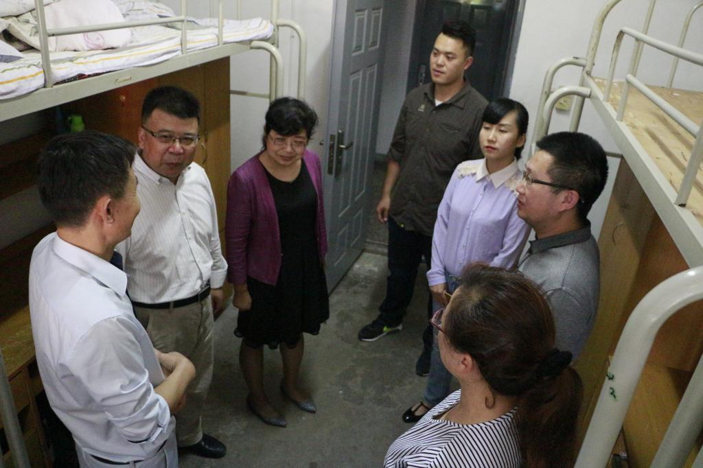 8月31日下午,环化学院党委书记李建学带领全体学生工作办公室辅导员,走进学生公寓,探望刚入学的大一新生,并提醒新生们注意防火、防盗、防骗等宿舍安全问题。