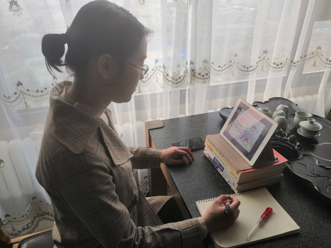 《化工制图(B)》主讲教师赵亚梅副教授围绕在线教学工具应用、课堂讨论、师生互动环节设置、课后辅导等,与教师们进行了深入交流,并通过在线课堂演示,把在线教学的课堂教学场景进行了充分展现。赵老师根据课程特点重构教学方案,突出重点与难点的讲解,引入工程案例并强化互动环节。制定教学组织流程:发布上课扫码海报→提前15min测试与课前预热→提前5min再次调试和组织签到→直播上课→课后安排→点击下课并导出听课列表。此外,融合多年的教学经验和教学风格,采用基于腾讯课堂的“两种技巧融合、三个模式切换”的在线直播教学模式,将成熟的线下教学和新颖的线上授课相融合,结合举手、圈点、涂鸦、口令等多种互动方式,将分享屏幕、PPT语音直播、视频直播等模式进行交互使用,受到2017级应化专业学生的喜爱,学生们很快进入了学习状态,激发了学习兴趣,教学效果良好。