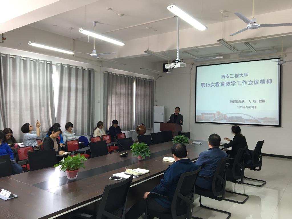 会上,万明处长首先介绍了我校第十六次教育教学工作会议的基本情况,并传达了校长高岭在教学工作会议上的重要讲话精神。其次,万处长分析了目前我校本科教学工作存在的问题,指出了学校未来教学发展和教学改革的方向。最后,就工程专业认证自评报告中需要注意的关键问题进行了一一说明。