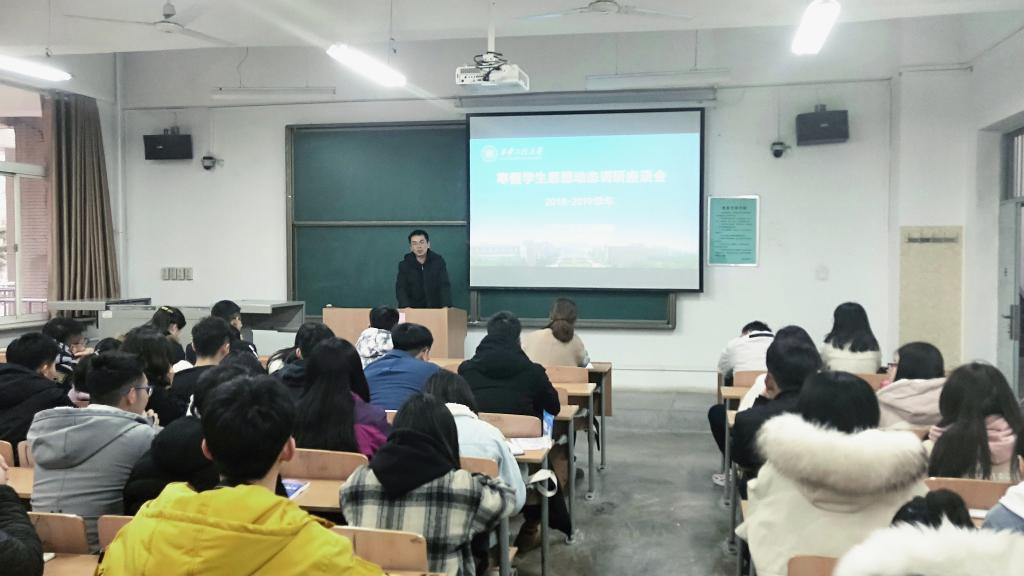 于教学楼A132召开2019寒假思想动态调研座谈会。学工办主任林定武、18级辅导员刘婧及学生代表参加本次座谈会。
