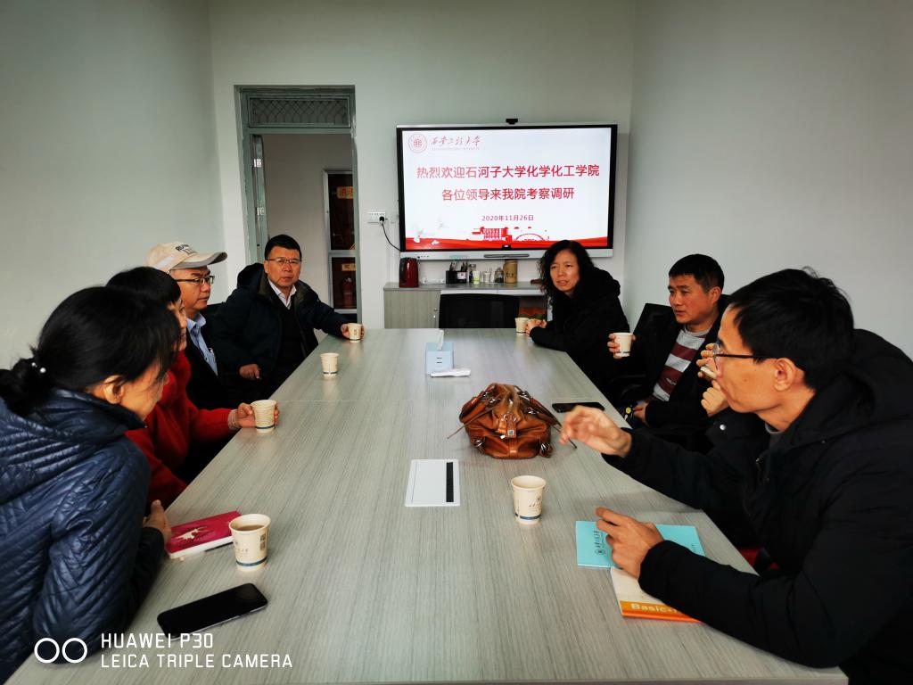 11月26日上午,石河子大学化学化工学院鲁建江副院长一行3人到海角网 考察交流专业建设工作,学院李建学书记、常薇副院长及环境科学与工程系主任、副主任等参加了调研交流。