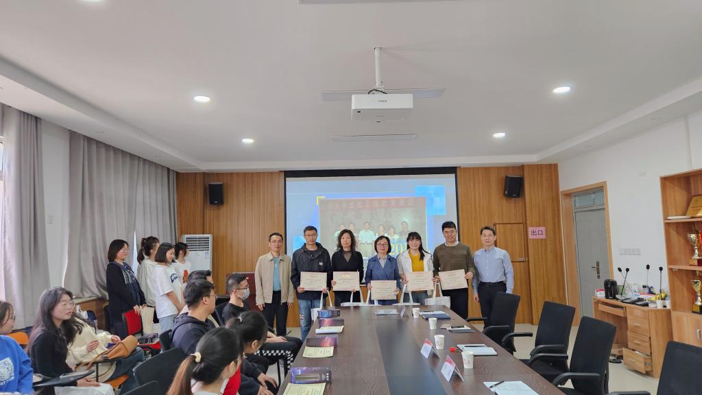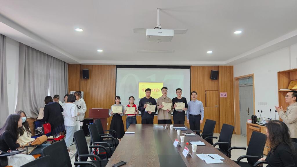 接着副院长常薇宣读了获奖名单,与会领导和老师为参赛获奖团队颁奖。获奖学生邓开心代表团队发言。