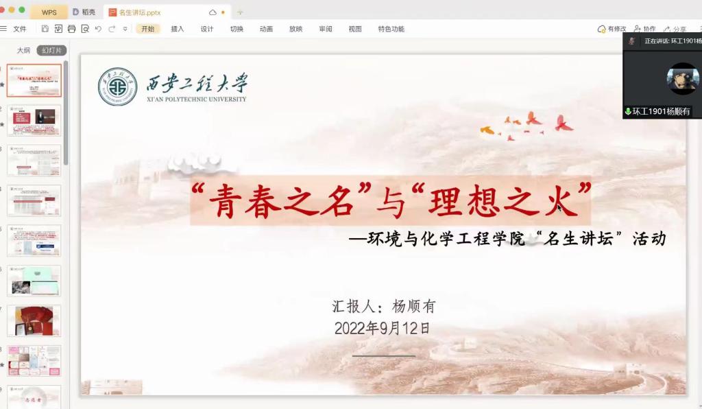 以线上腾讯会议方式举办第八期名生讲坛活动。本次活动邀请到优秀学长樊晓晨、崔双虎、张鹏远、杨顺友、学姐杨柯欣来分享他们大学四年积累的学习生活经验。全体2022级本科新生参加了此次活动。本次活动由团总支书记贾天昱主持。