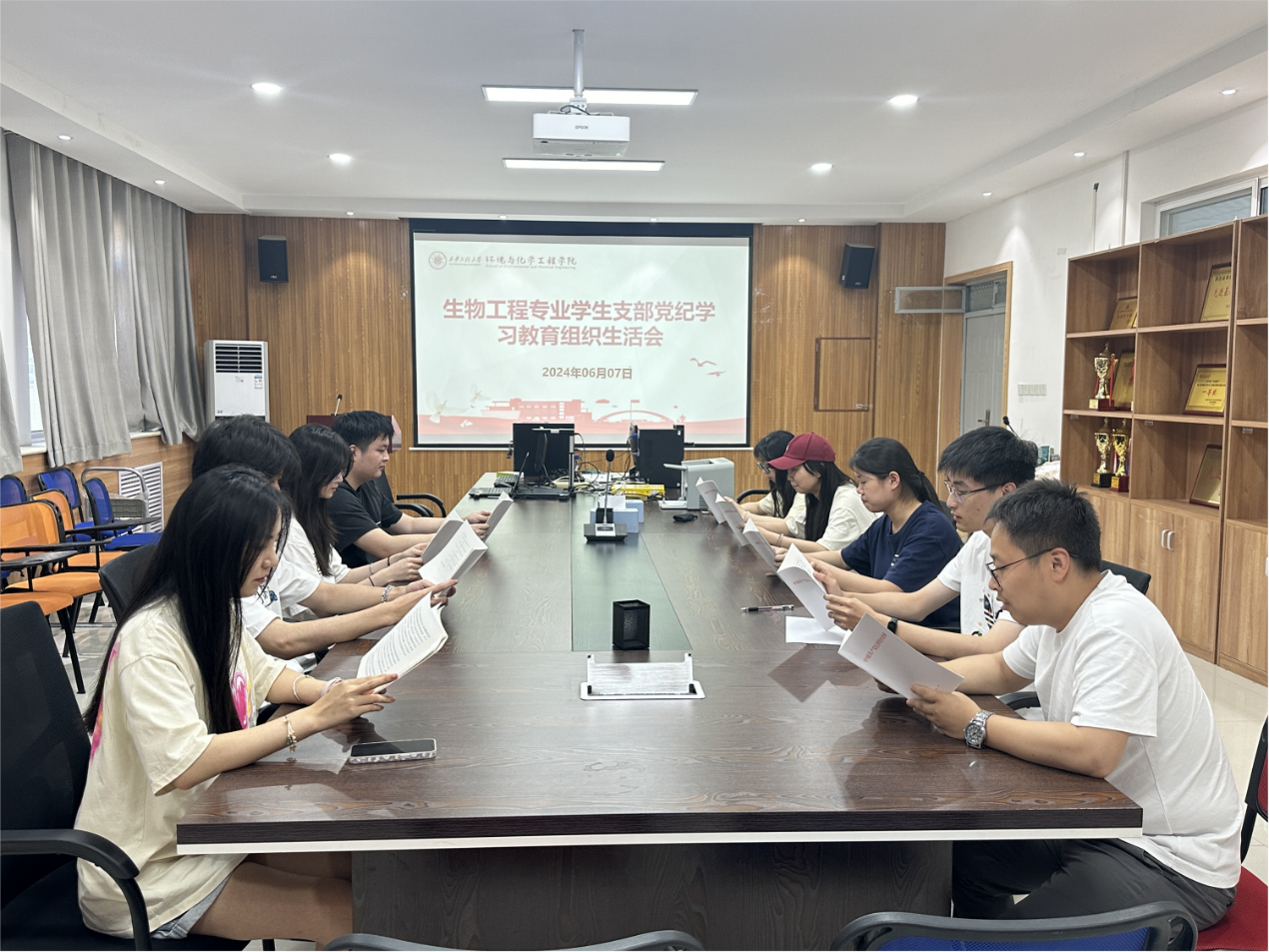 生物工程专业学生党支部在学院507会议室召开党纪学习教育专题会。会议采取线上线下相结合的方式进行,支部全部党员参与此次会议。