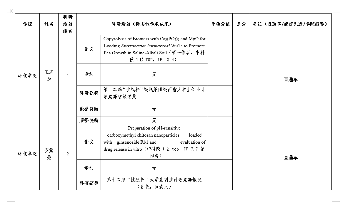 研究生国家奖学金申请人成果统计汇总表