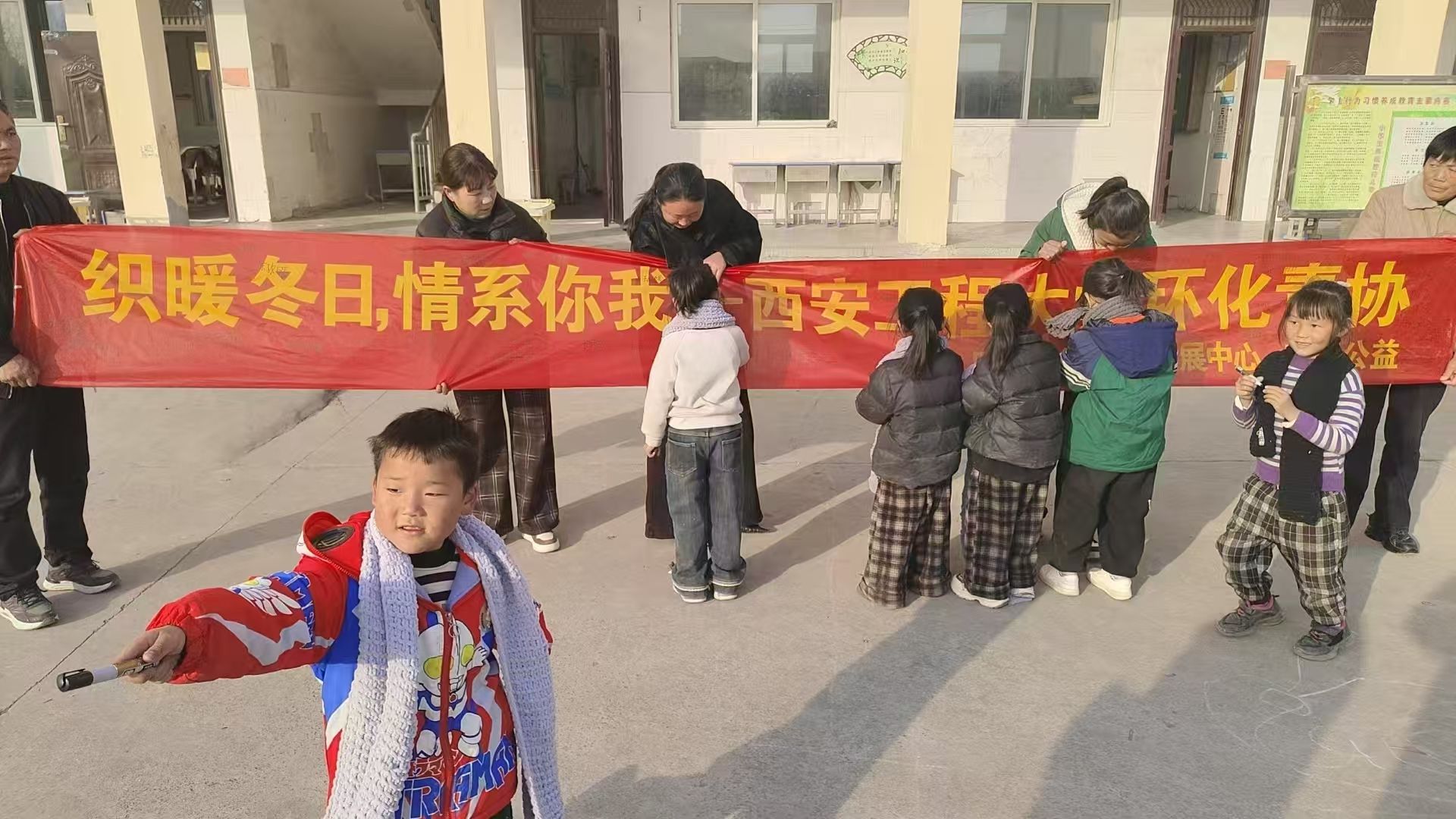 12月2日,活动的高潮在乡村小学的操场上上演。志愿者们与孩子们共同展开“织暖冬日,情系你我一一海角网