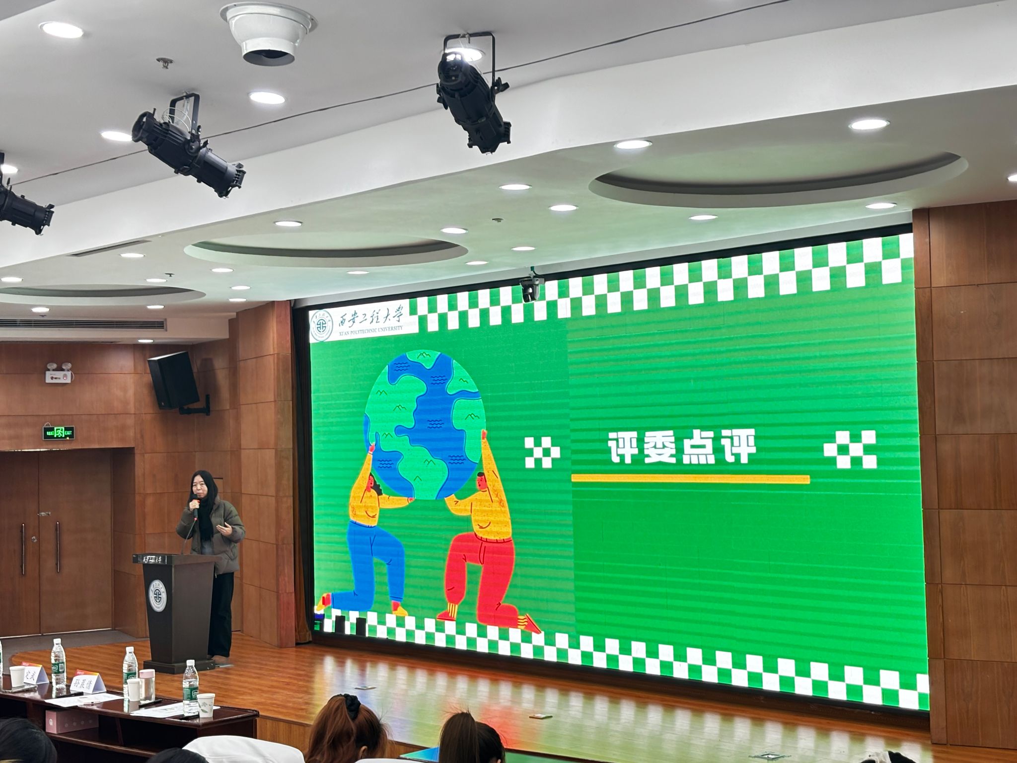 本次活动,旨在通过创意设计传递环保理念,凝聚志愿力量,为陕西省环保志愿者联合会设计志愿者马甲。自活动启动以来,吸引了全校各院学子积极参与,经过前期严格评审,共有9支队伍进入决赛。在作品展示环节,9支团队依次登台,围绕“环保初心与志愿担当”主题,系统阐述了设计理念与创意特色,参赛作品风格多元、构思巧妙,选手们通过设计让环保理念可知可感,体现了青年一代对生态文明与志愿精神的深刻体认。