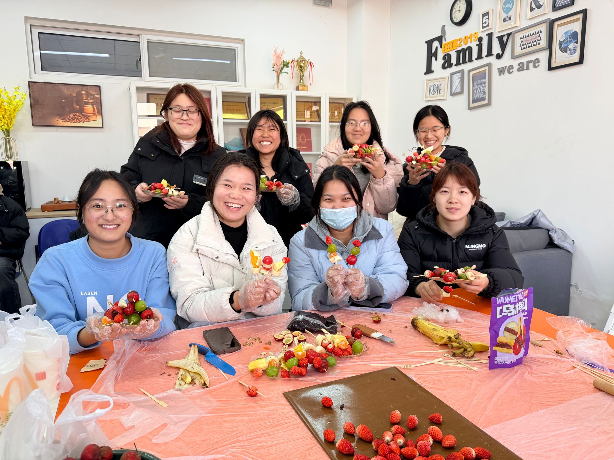 随后,冰糖葫芦手工制作环节将现场气氛推向高潮。师生共同参与,从水果清洗、竹签穿串,到糖浆熬制、裹糖成型,各个环节衔接有序、互动融洽。晶莹的糖衣包裹着鲜艳的水果,传递着真挚的祝福与情谊。同学们在亲手制作中感受传统手工艺的魅力,在分享成果中体悟协作与感恩的温暖。