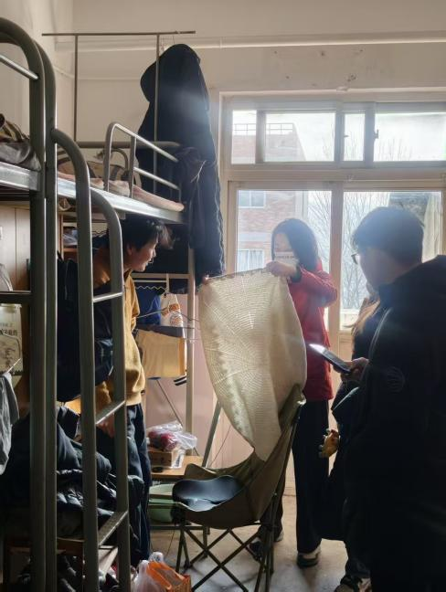开展本学期第四次研究生宿舍安全卫生集中检查,研究生辅导员朱瑾带队,研会骨干组成联合检查组进行全面排查。