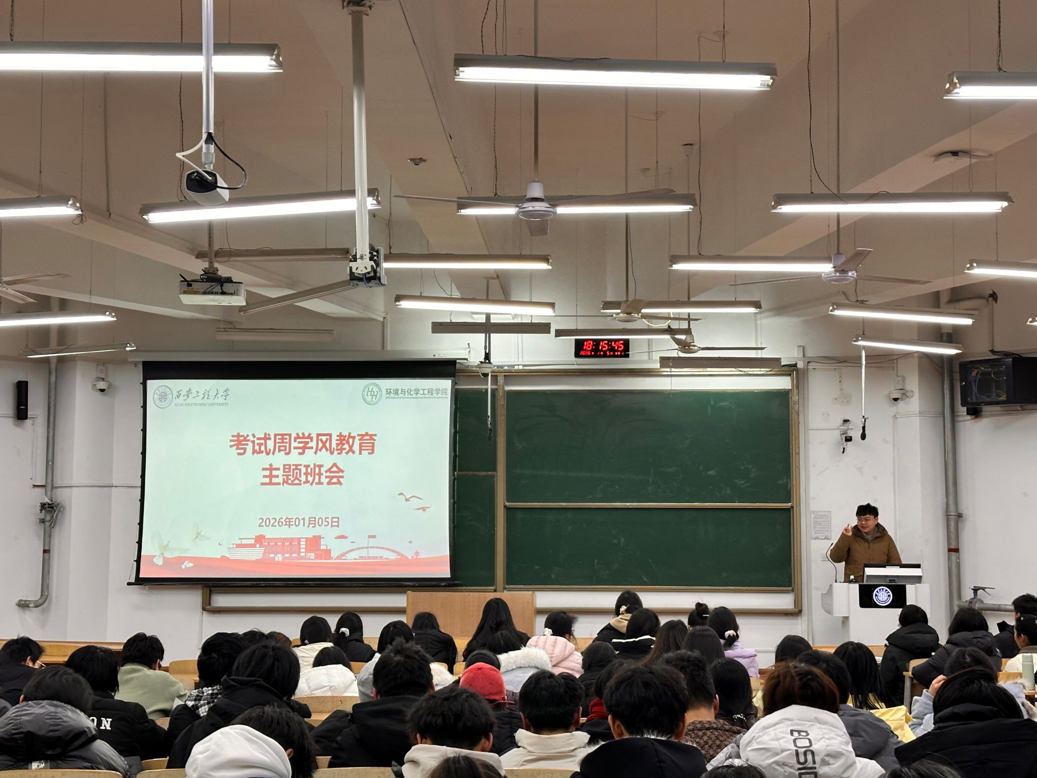 为增强学生诚信考试意识,营造公平、公正、守纪的考试氛围,1月5日,2025级全体学生在教学楼B133教室集中参加了考试周学风教育主题班会。