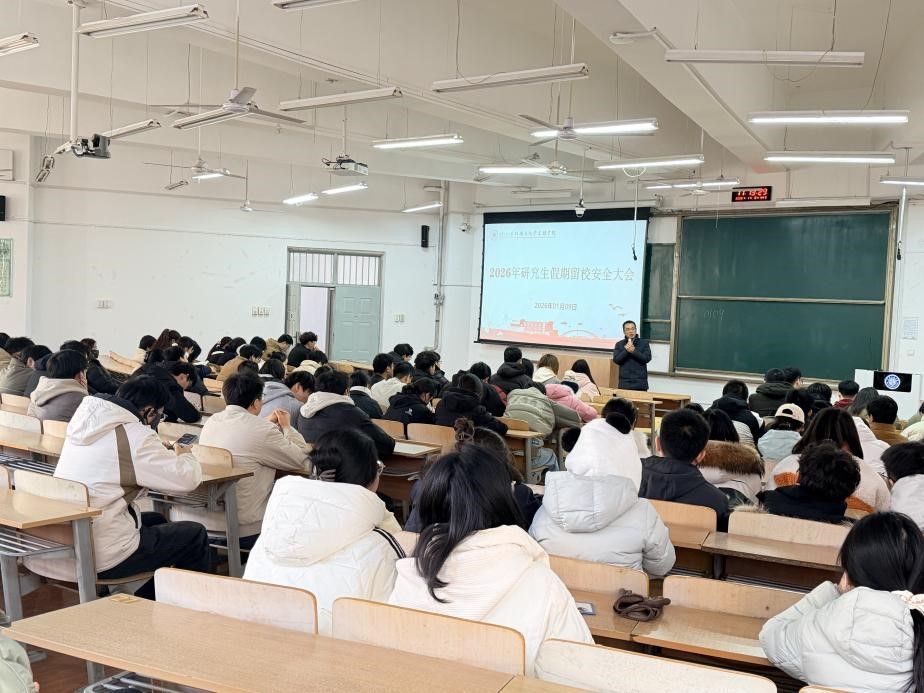 1月9日上午,研究生留校安全大会在B-133教室召开,院党委副书记林定武、辅导员朱瑾及全体留校学生参会。会议首先由林书记传达了学校假期管理要求,并结合学院实际强调了安全工作的重要性。随后,朱瑾老师围绕宿舍消防、用电、出行安全及心理健康等重点领域展开教育,特别提醒学生严禁使用违规电器,妥善保管财物。此外,会议要求留校生每日报备动态,确保突发情况能及时响应,同时鼓励大家合理规划假期,遇困难及时与导师或辅导员沟通。