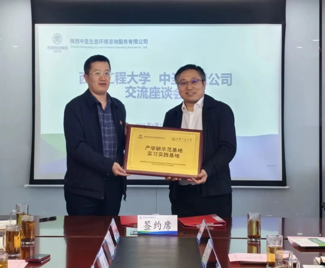 与陕西环保集团中圣环境公司举行产学研合作签约暨授牌仪式。学院党委书记、院长武占省与中圣环境公司党委书记、董事长郭治敏代表双方签约,双方相关部门负责人出席活动。
