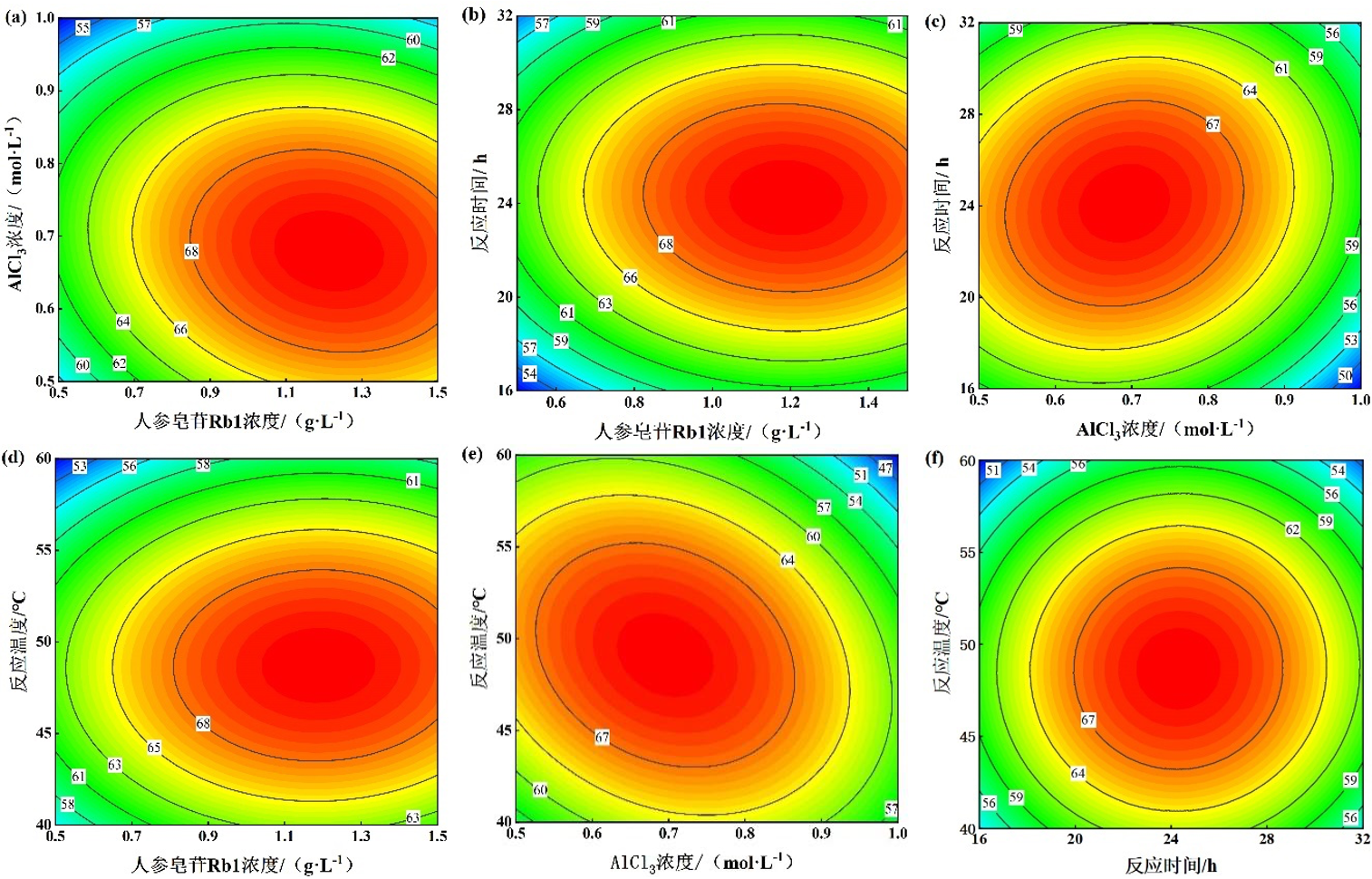 在绿色化学催化工艺开发与过程优化方面,课题组针对稀有人参皂苷转化过程中存在的反应条件苛刻及效率受限等问题,构建了基于金属离子催化的高效转化体系。通过筛选低成本金属离子Al3+催化剂并引入绿色溶剂体系,结合单因素实验与响应面优化方法,系统调控关键反应参数,建立了温和条件下的定向转化工艺。该研究从反应路径调控与催化机制层面入手,提升了目标产物生成的选择性与过程可控性,同时兼顾环境友好性与工业可行性,为稀有人参皂苷Rg5的规模化绿色制造提供了新思路。研究成果以“AlCl3催化制备稀有人参皂苷Rg5的工艺优化”为题发表于国内CSCD期刊《应用化工》,化学与工程技术专业2022级研究生高一平为第一作者,曹翠老师和孙先锋老师为共同通讯作者,海角网 为通讯单位。
