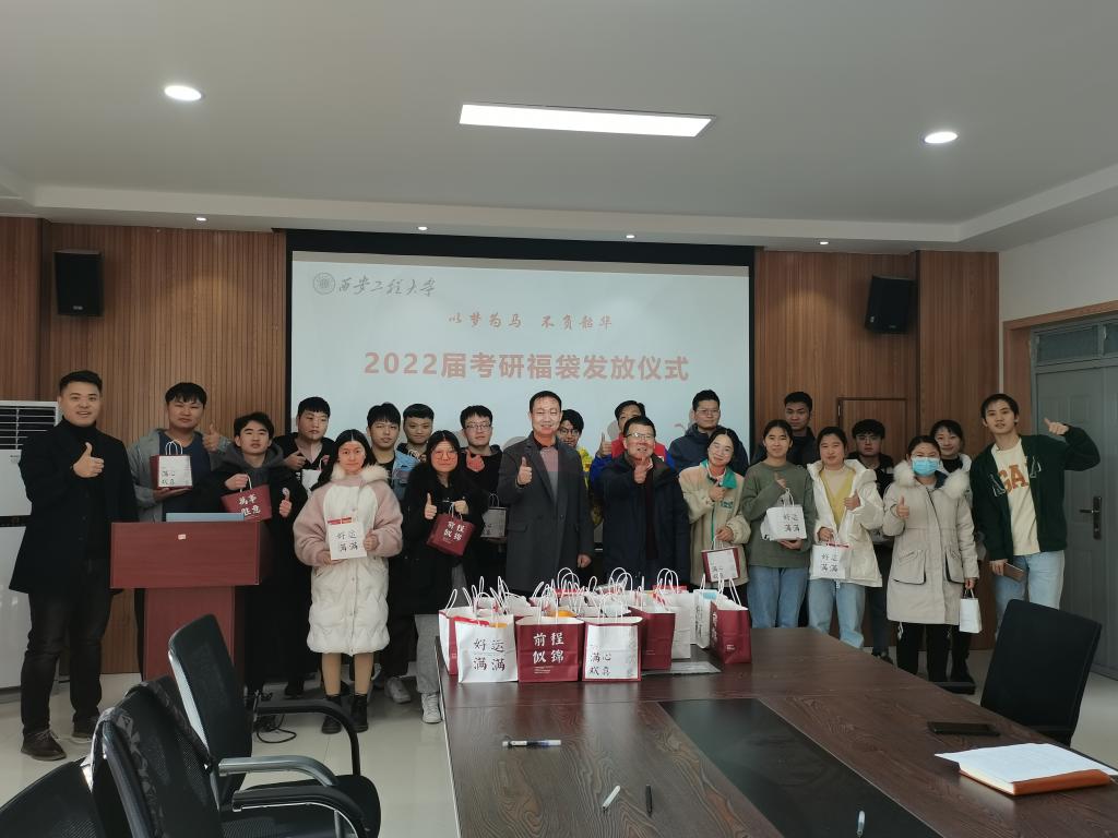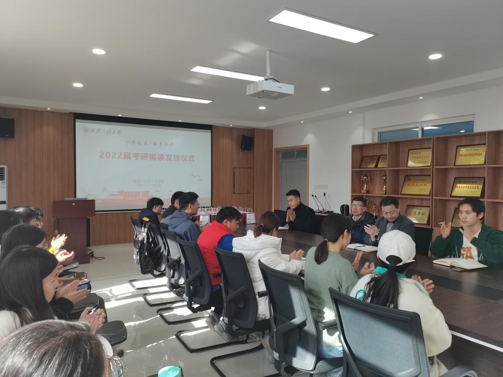 为了营造积极温暖的考前氛围,给学院广大考研学子加油打气,学院于2021年11月30日在507会议室举行2022届考研学生福袋发放仪式,学院党委书记李建学、党委副书记赖斌、团总支书记贾天昱、辅导员张易泽及部分考研学生代表参加活动。