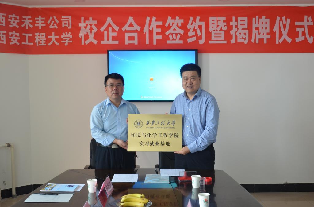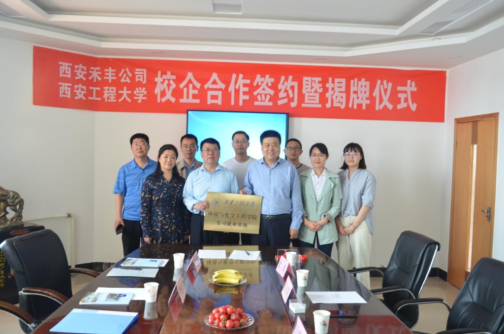 与西安禾丰科技有限公司校企合作签约暨揭牌仪式在西安禾丰科技有限公司举行,环化学院党委书记李建学与禾丰牧业运营二区总监强志锐签订了实习就业协议,环化学院林定武、王晓军、原龙老师,禾丰人事经理徐璐玲、总经理助理冯鹏刚、营业室副经理史良、韩少英等参加了签约揭牌仪式。