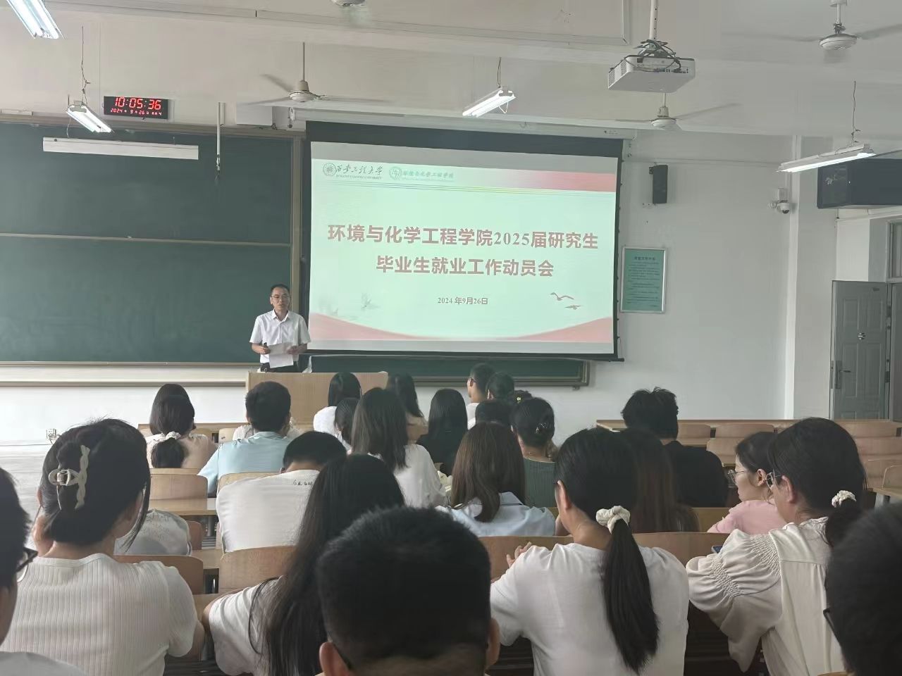 2025届研究生毕业生就业工作,引导毕业生树立正确就业观念,提高就业积极性和主动性,促进毕业生高质量充分就业,学院于9月26日召开2025届研究生毕业生就业动员会。学院党委副书记林定武、学生工作办公室主任朱瑾、研究生辅导员贾天昱和2025届研究生毕业生参会。
