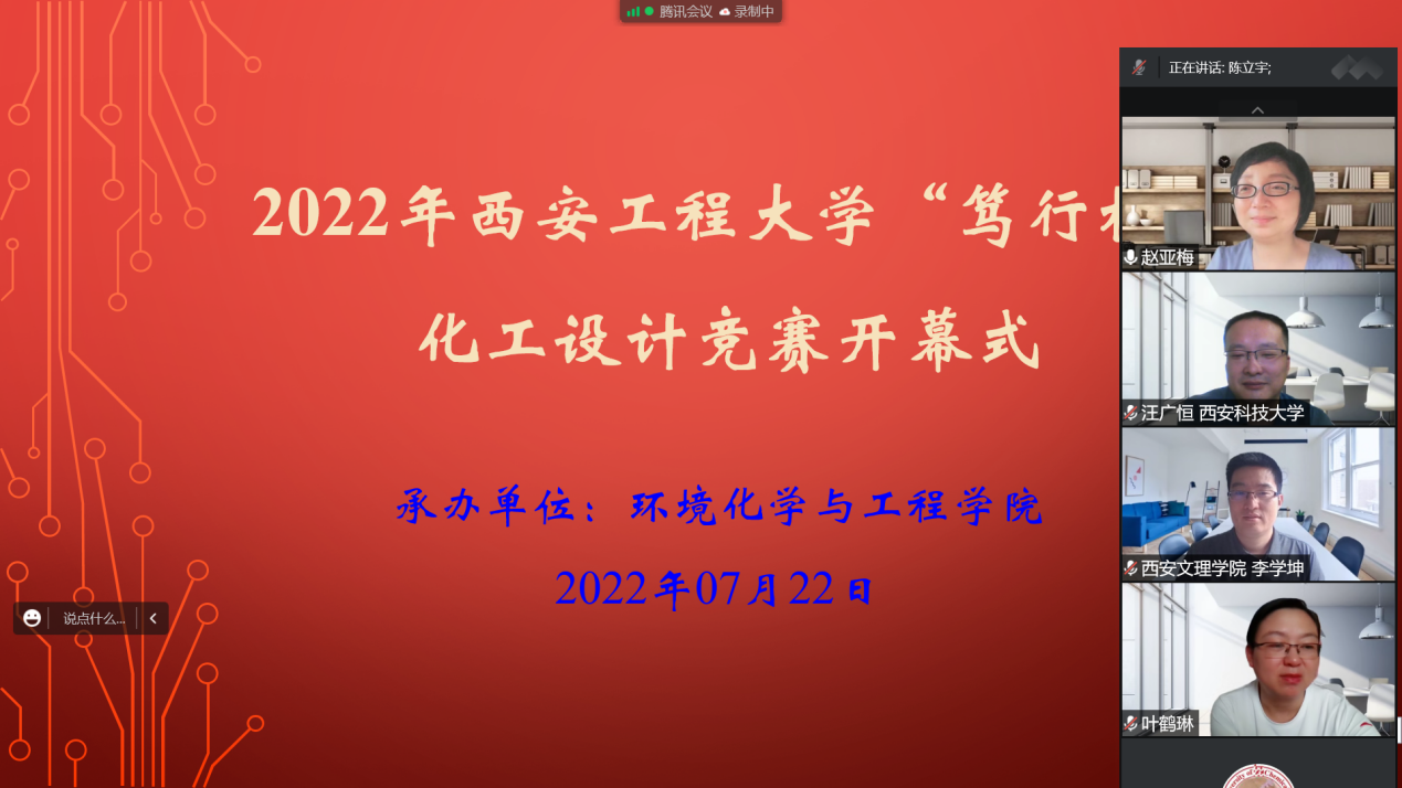 第四届“笃行杯”化工设计竞赛通过腾讯会议形式在我校成功举行,本届比赛采用线下评审和线上答辩相结合的方式进行,此次竞赛得到我校教务处和学工处等部门的大力支持。