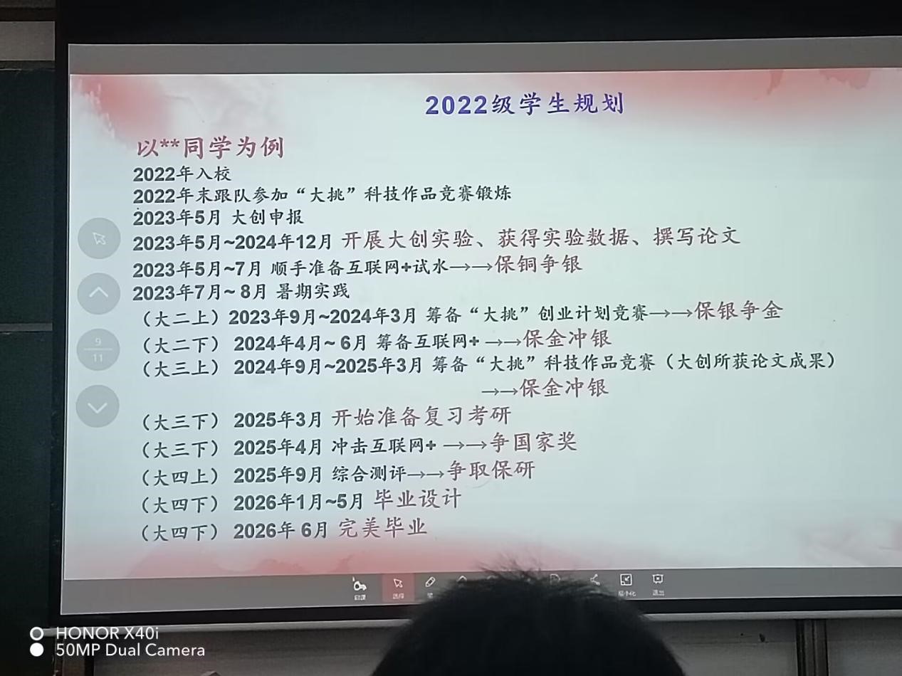 随后何艳慧老师还针对同学关心的保研和国奖奖学金的评定做出了详细的解说,并为22级学生制定了竞赛参加的最佳安排规划以及针对目前还未参赛学生的后续追赶方案。