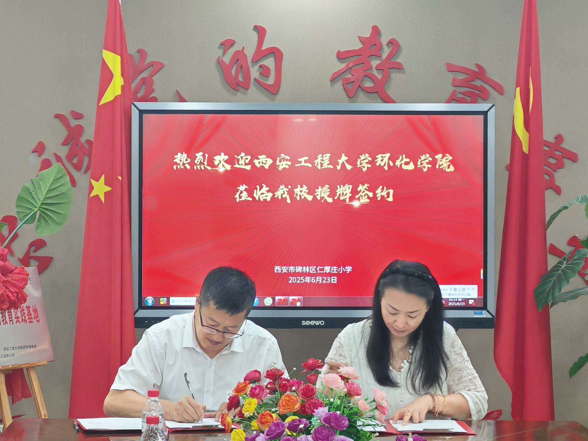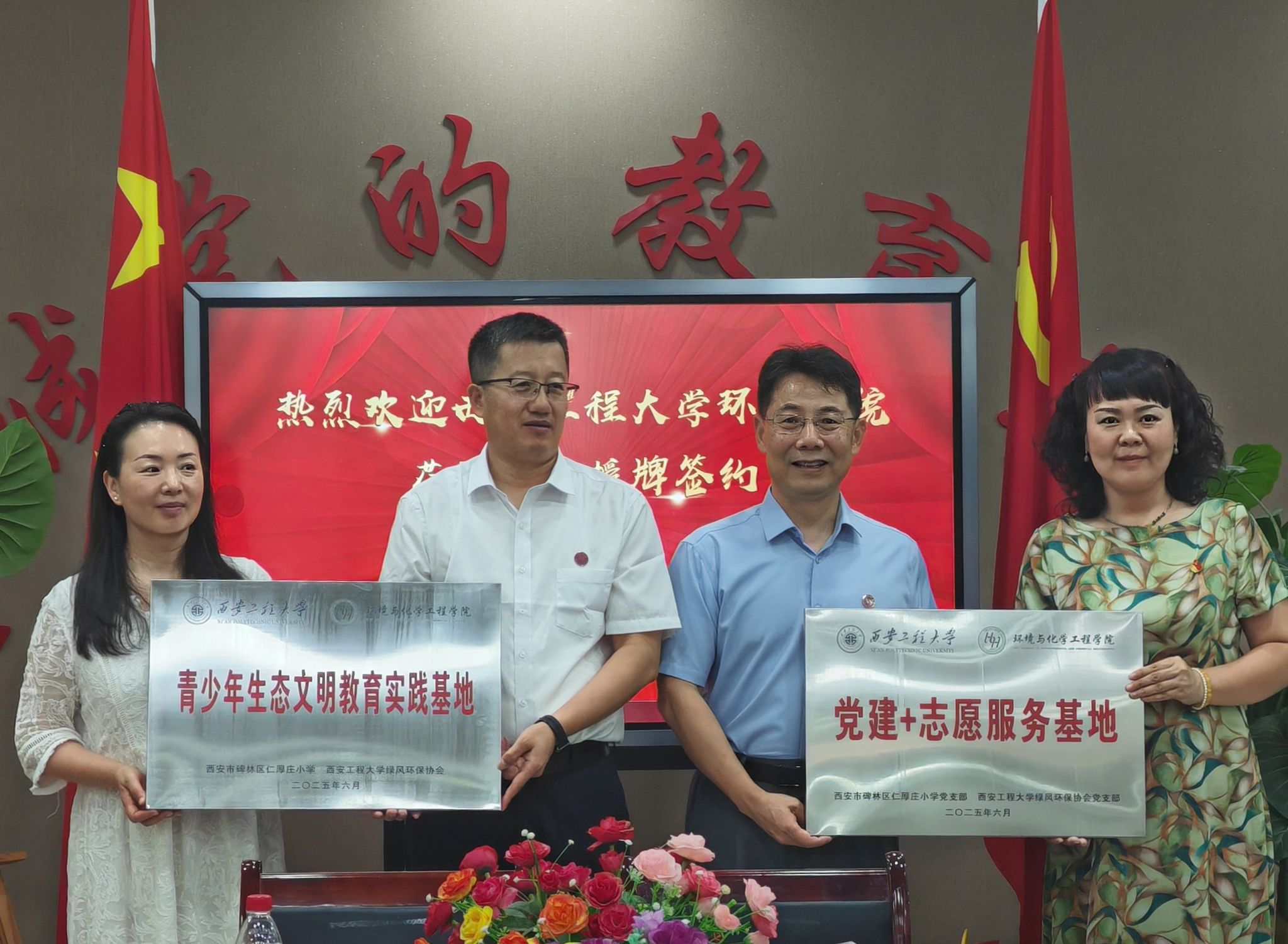 赴碑林区仁厚庄小学开展“青少年生态文明教育实践基地”暨“党建+志愿服务基地”授牌签约仪式。学院党委书记胡西民、副院长(主持工作)武占省、党委副书记林定武、学院部分教师代表和绿风环保协会志愿者代表出席活动。此次活动由仁厚庄小学德育主任车翻莉主持。