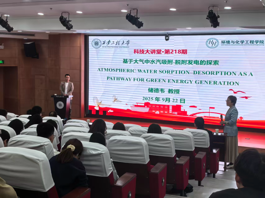 9月22日下午,报告在临潼校区图书馆一层报告厅举行。储德韦教授以“基于大气中水汽吸附-脱附发电的探索”(Atmospheric Water Sorption–Desorption as a Pathway for Green Energy Generation)为题作专题报告。我校副校长张洛红教授、科研院院长樊威教授、环化学院院长武占省教授,以及中青年教师和研究生百余人参加。报告会由环化学院副院长武峥主持。