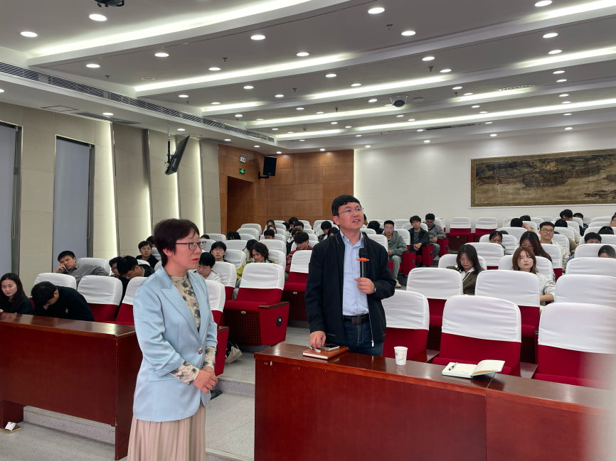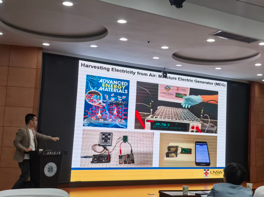 在交流环节,师生围绕水汽发电器件寿命与功率密度、海水淡化、柔性传感及“空气发电机”等话题踊跃提问,储教授一一予以细致解答,并就学院科研方向与团队建设提出宝贵建议。多位研究生就赴澳深造条件与培养政策进行咨询,储教授详细介绍了招生要求与语言条件,并鼓励学子在中澳友好交流背景下积极考虑海外研修。张洛红副校长也勉励在场学生把握国际化机遇,勇敢走向世界学术舞台。